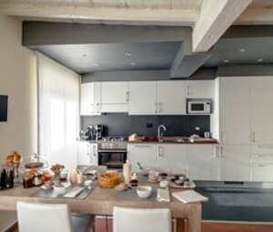 Fourth floor with elevator, top of the line furnishings and italian decor, large open, well equipped kitchen for those who like to cook.