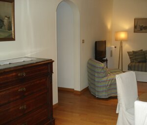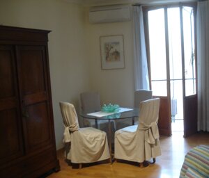 This elegant, spacious one bedroom apt is located in via Pietrapiana, 2nd floor in the famous and colorful San Ambrogio market area. Very nice, large, open comfortable living-dining area with balcony that allows for lots of bright natural light. The whole apt faces towards the back and therefore very quiet and peaceful.