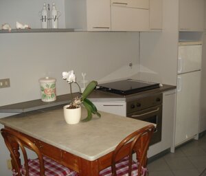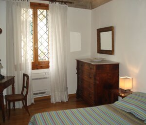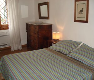 One large bedroom wth painted cieling and full kitchen with marble table and chairs. The apt has A.C., Wi-Fi , t.v. and all other comforts.